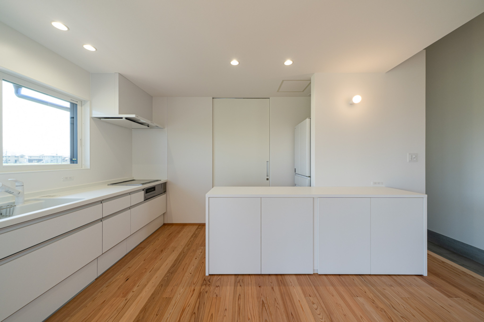 壁・天井をはじめ、キッチン・造作家具を白で統一。
