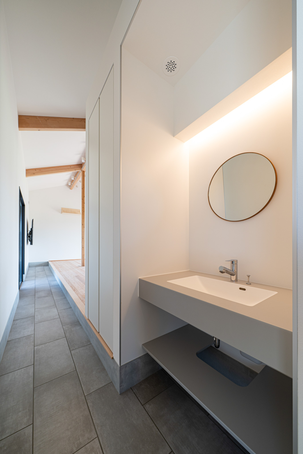 土間の先には、共用の洗面・トイレを配置し、使いやすさにも配慮された設計に。