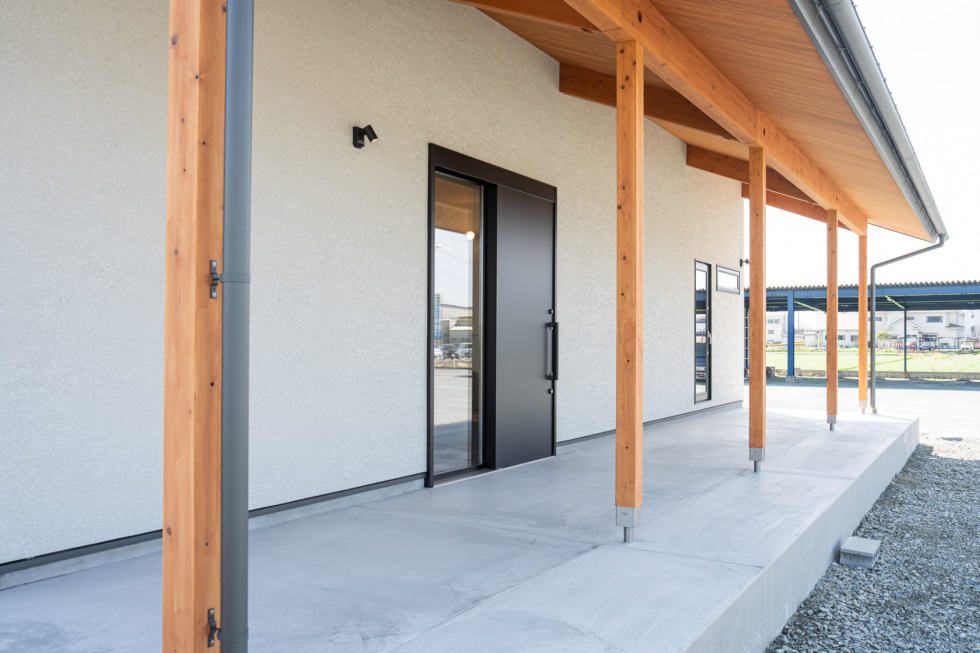 外部土間は広めに設計し、長く伸びる軒が日差しや雨をやわらかく遮る、快適な半屋外空間に。