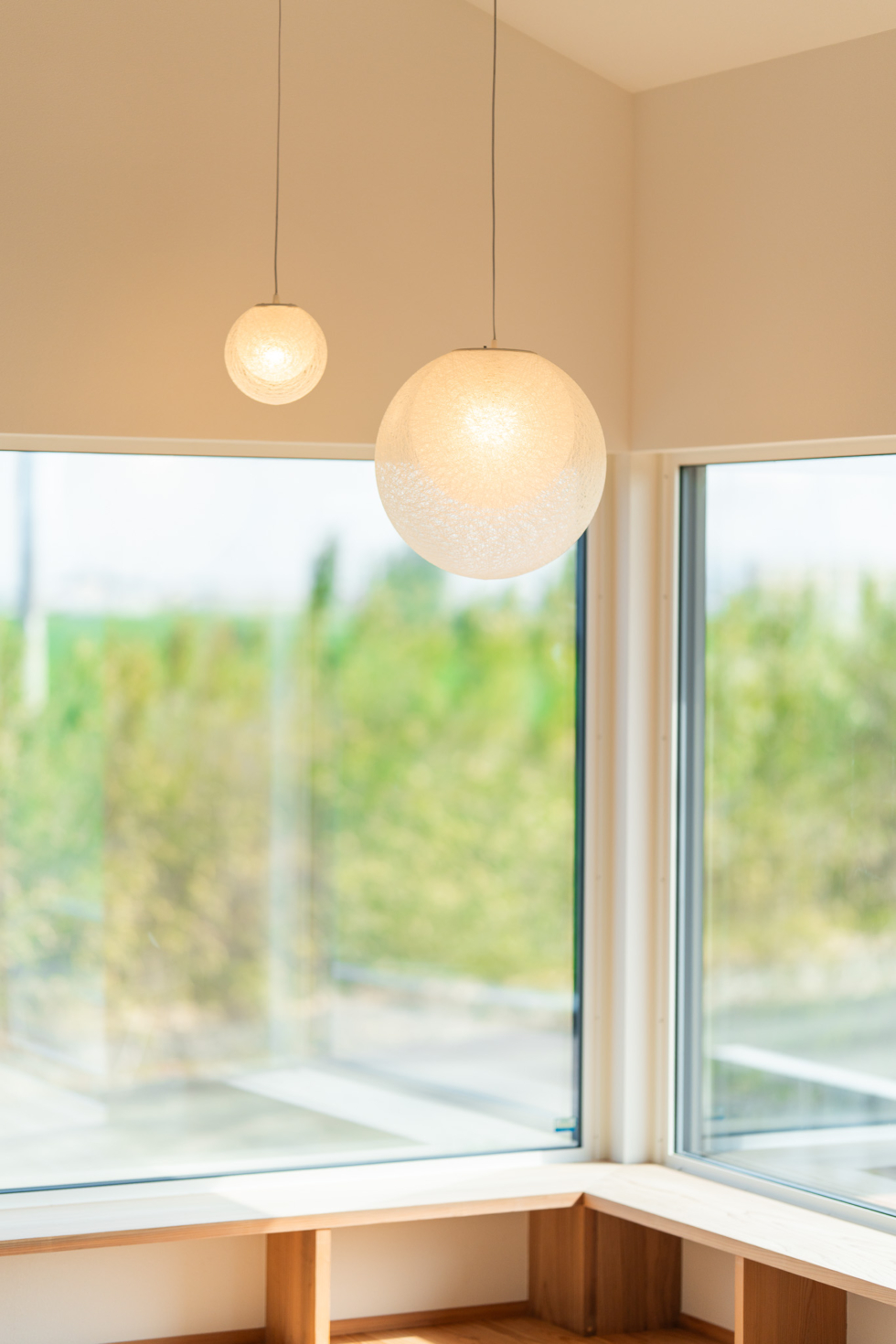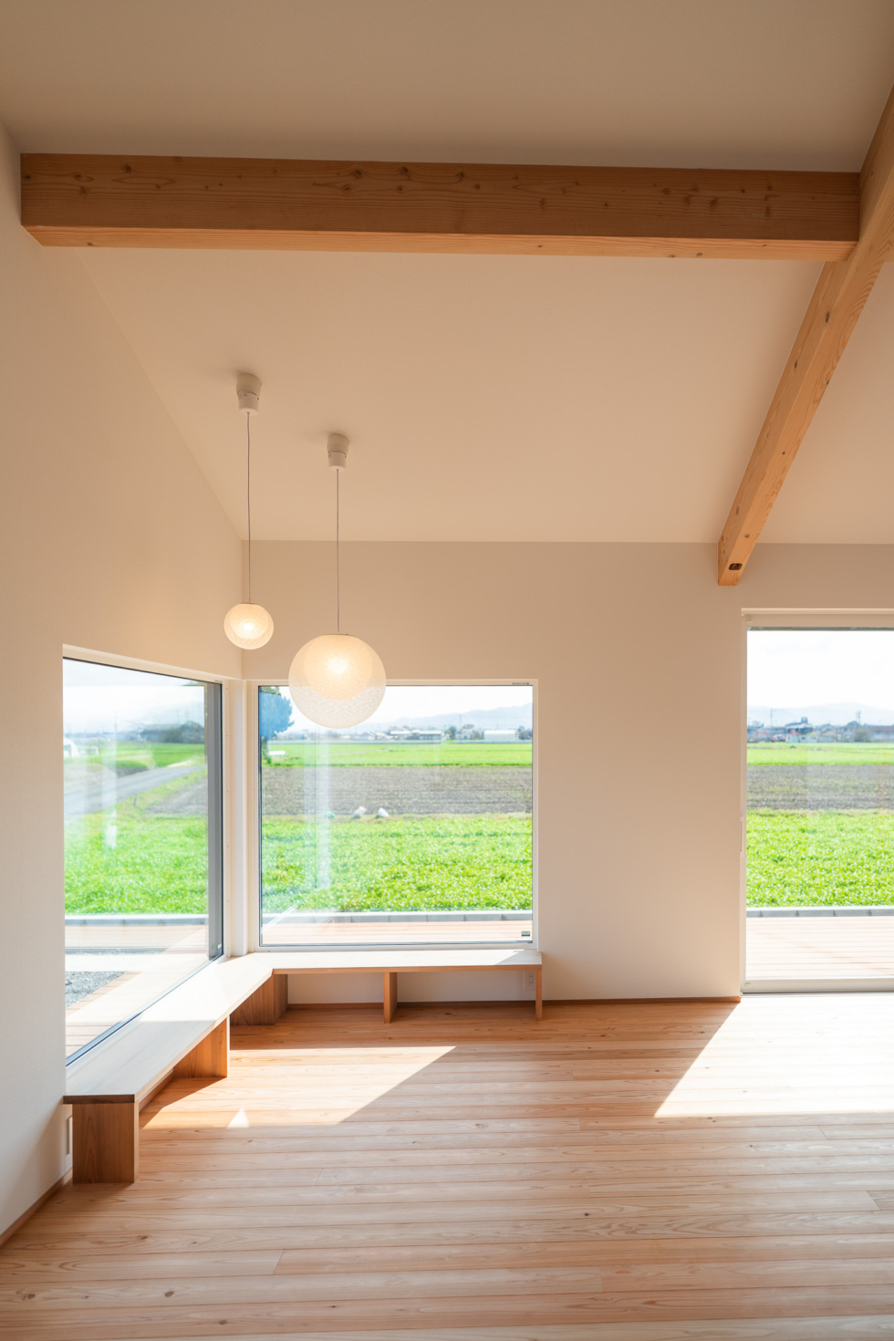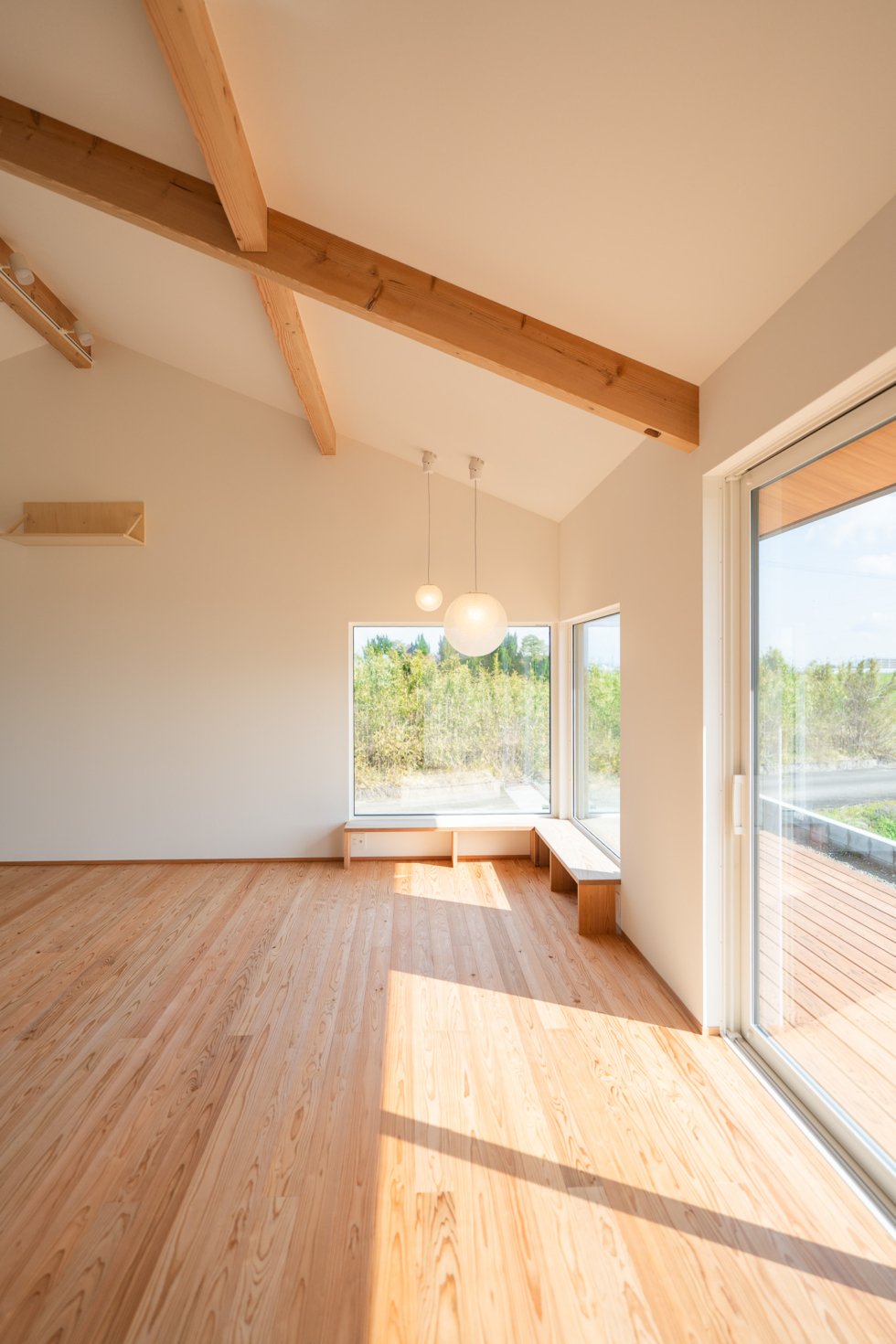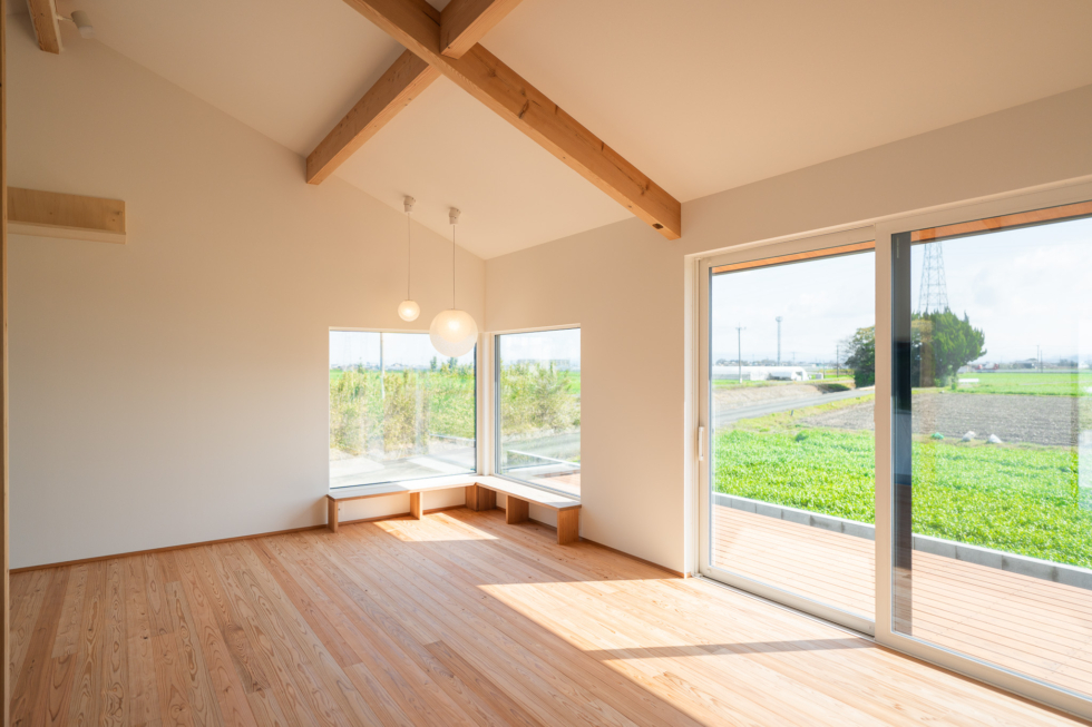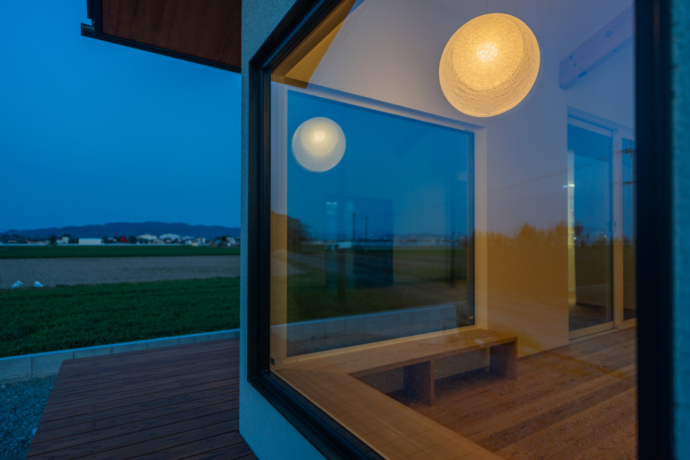 奥にはL字に窓を設け、造作のベンチを設置。