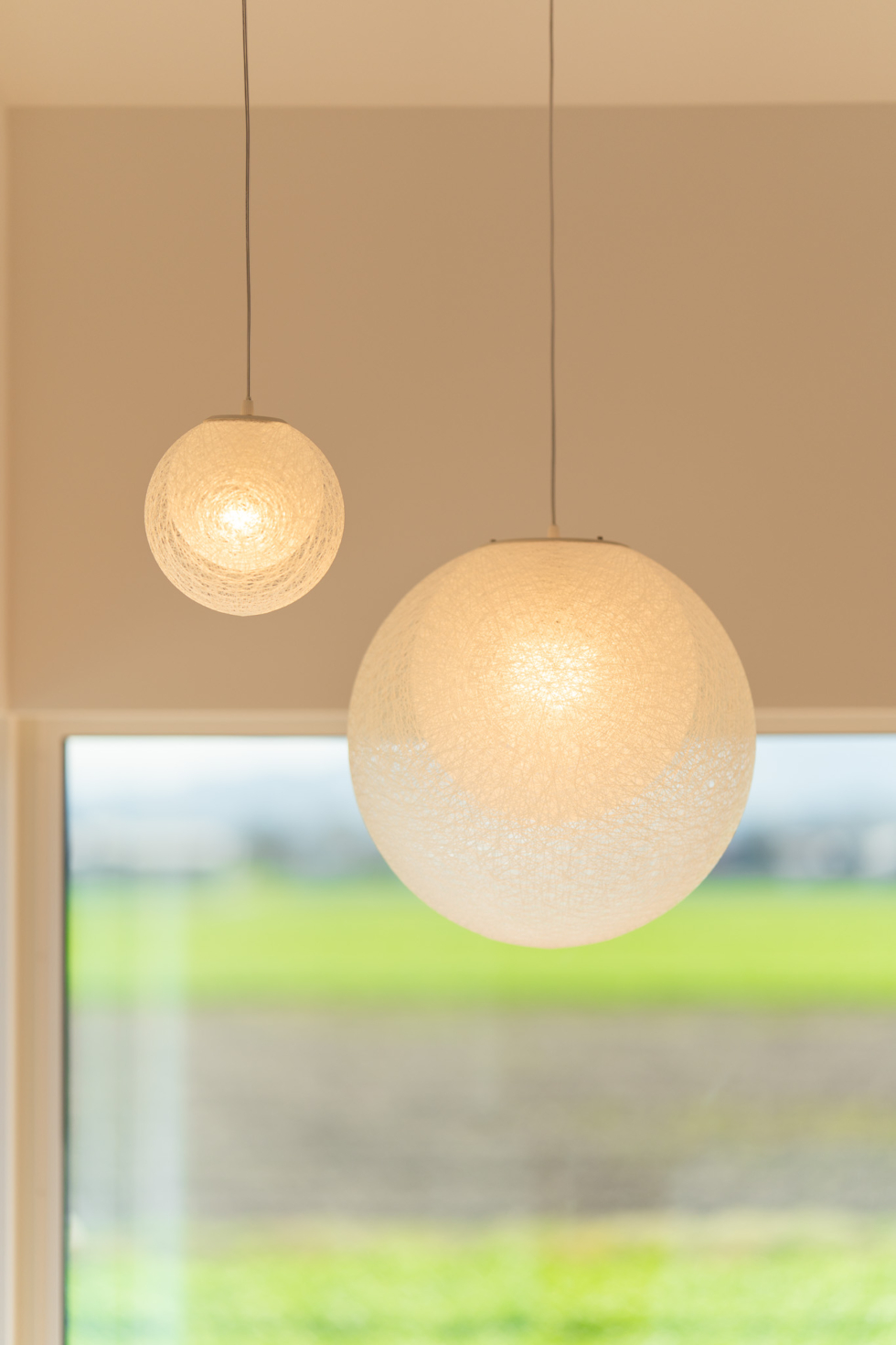 印象的な丸い照明が空間をやさしく照らし、