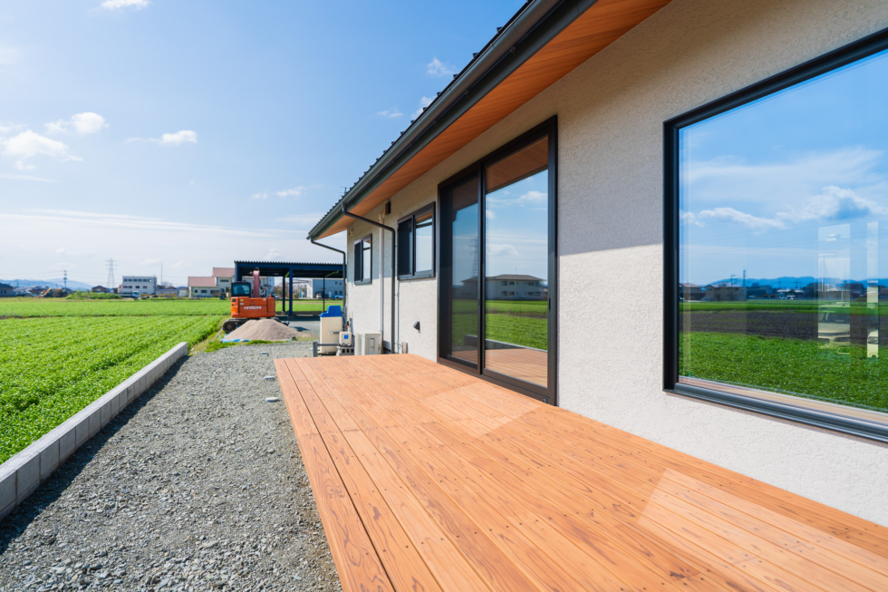 その魅力を最大限に活かすため、視線が大きく抜ける窓と、ゆったりとしたL字状のウッドデッキを設けました。