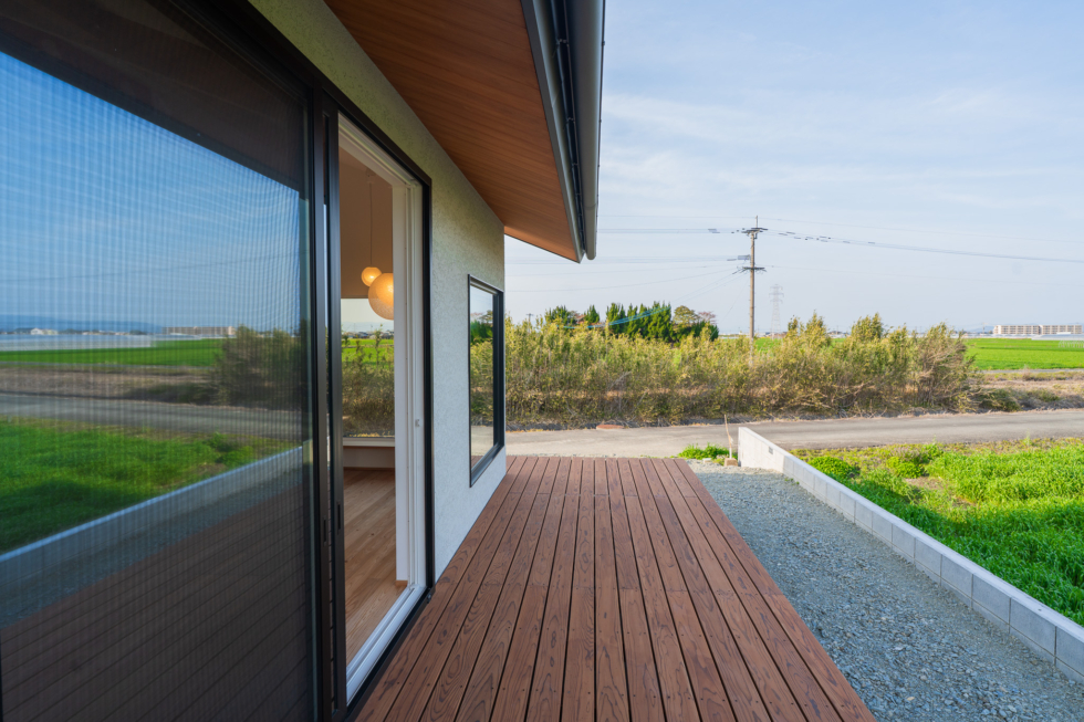 室内からそのままつながり、外の景色を身近に感じられる空間です。