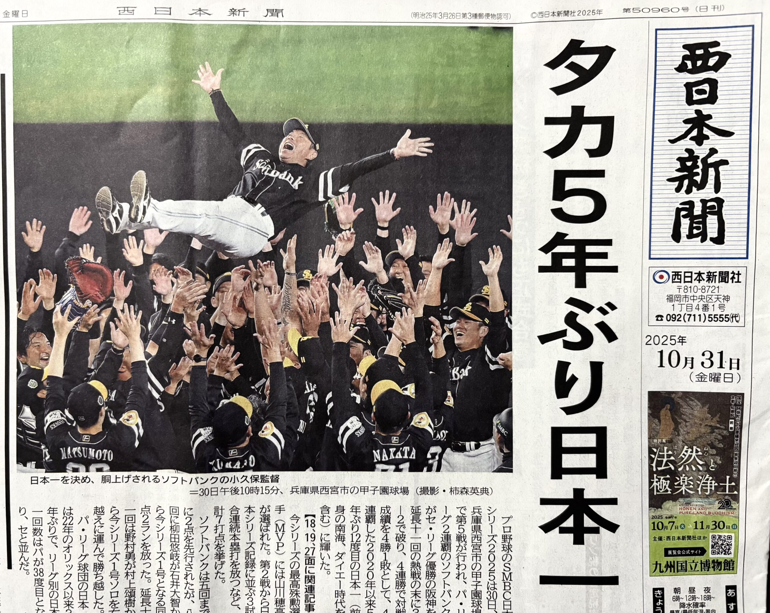 延長11回で5年ぶりの日本一チームを獲得しました!!